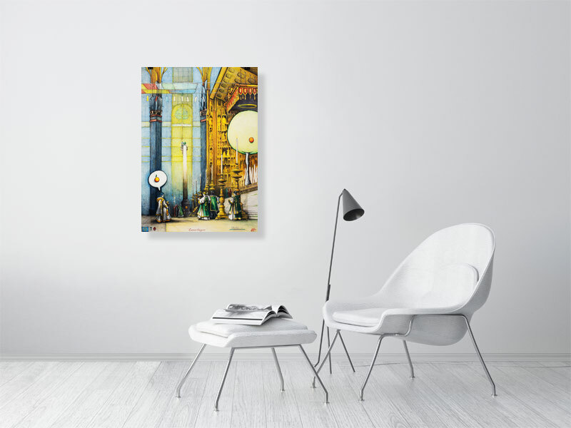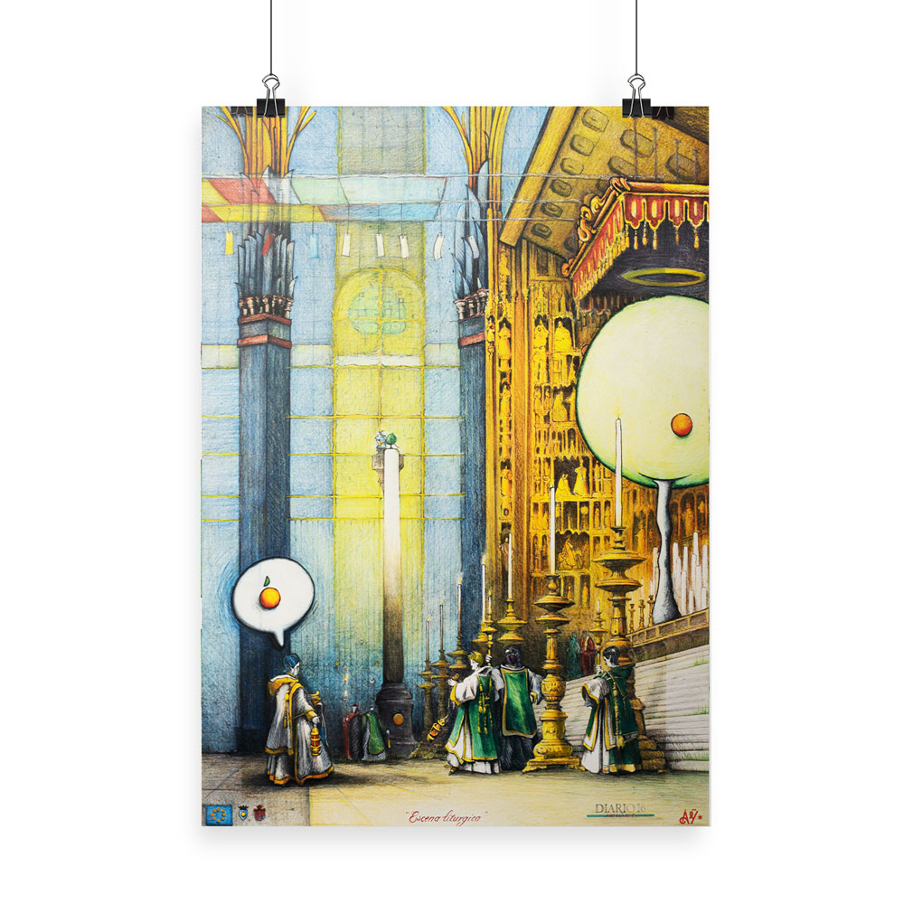 - Archival Fine Art Print based on a high resolution scan of the center piece of the original artwork “Escena Litúrgica” by Riccardo Rossi. Mixed Technique, Pencil on Paper. Size: 55 X 39 cm